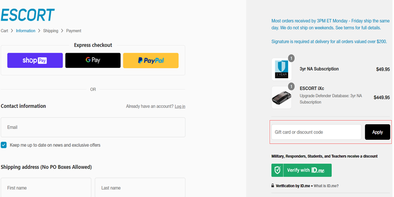 Wnat to get extra discount for Escort Radar, visit VoucherArea to use promo codes listed above for more savings. Read following the steps to see how to use it:
